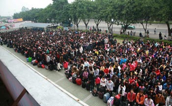 “三六九往外走”,記者這兩天在廣州火車站看到,很多農(nóng)民工背著大包小包回到廣州。未到元宵節(jié)即返廠的貴陽農(nóng)民工盧盛才,之前在佛山市立邦模具廠做焊工,每個月能掙2500元左右。這次老板打電話,說工資又提高了,他才過來! “今年廣東的就業(yè)形勢好,很多老鄉(xiāng)回家前就被‘預(yù)訂’,一些人過節(jié)的時候就接到電話要求提前回來上班!北R盛才興奮地說。 在訂單回升、季節(jié)性用工難、勞動力求職人數(shù)下降等多種因素的作用下,珠三角近來持續(xù)“找工難”。在東莞、佛山、深圳等地出現(xiàn)反季節(jié)“招工潮”,但還是滿足不了眾多企業(yè)的“胃口”。 長三角地區(qū)一些城市遭遇的“用工荒”更是前所未遇。據(jù)不完全統(tǒng)計,僅浙江湖州用工缺口目前已經(jīng)達到5.3萬。民營經(jīng)濟重地臺州市僅市區(qū)企業(yè)提供的崗位數(shù)就有4.5萬個,而進場求職的農(nóng)民工只有1.4萬人,供需比為1∶3。杭州市外來勞動力市場前兩天更是創(chuàng)造了勞動力供需比的新紀(jì)錄1∶20。 國內(nèi)制傘業(yè)龍頭企業(yè)浙江紅葉制傘有限公司為了能夠順利招到工人,開出了公司成立以來最優(yōu)惠的招工條件:老員工每介紹一個新員工就給予600元的獎勵,新員工到公司就業(yè)的第一個月就能拿到600元的“適應(yīng)性補助”。 國家統(tǒng)計局浙江調(diào)查總隊開展的關(guān)于企業(yè)用工需求情況調(diào)查顯示,這輪“用工荒”涉及企業(yè)的范圍正在擴大,幾乎蔓延到制造業(yè)、化工產(chǎn)業(yè)、批發(fā)零售業(yè)、餐飲服務(wù)業(yè)等大部分企業(yè),“有52%的企業(yè)預(yù)計今年春節(jié)后招工有困難,招工難短期內(nèi)很難有所改善。”