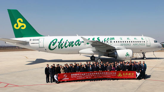 3月10日,春秋航空公司在空客天津交付中心首次接收空客天津總裝線組裝的飛機(jī),這架A320飛機(jī)是空客天津總裝線完成總裝的第16架飛機(jī)。據(jù)介紹,截至2010年1月,中國共有12家航空公司運(yùn)營著454架空客A320系列飛機(jī)。