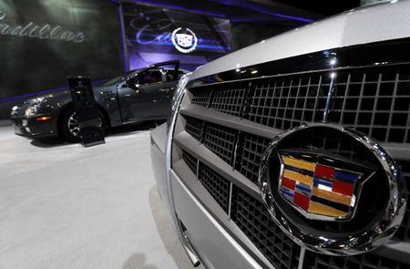 4月7日,通用汽車公司宣布2009年第四季度虧損34億美元,但預(yù)計將在2010年扭虧為盈。這是4月1日在美國紐約國際車展上拍攝的通用凱迪拉克汽車。