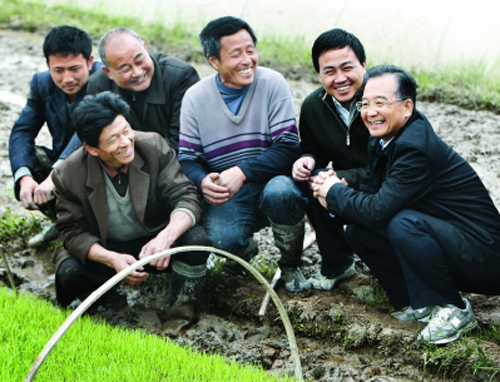 4月9日至11日,中共中央政治局常委、國務(wù)院總理溫家寶來到安徽蚌埠、池州兩地,深入田間地頭察看苗情,走村入戶看望群眾,實地考察農(nóng)產(chǎn)品加工龍頭企業(yè)和治淮工程現(xiàn)場,召開座談會聽取基層干部群眾的建議。 這是4月10日,溫家寶在池州市貴池區(qū)梅龍鎮(zhèn)和當(dāng)?shù)剞r(nóng)民一起察看早稻育秧情況。