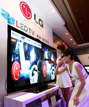 4月6日,LG在北京一舉推出了包括電視機(jī)、冰箱、洗衣機(jī)、空調(diào)等在內(nèi)的全線新品。其中,最具代表性、也是最受矚目的當(dāng)數(shù)LG首次亮相的Full LED 3D電視——LX9500和72寸的LEX9。 據(jù)了解,LEX9是目前全球最大的3D電視,達(dá)到72英寸,而另一款55英寸的LX9500的邊框?qū)挾冗不到1厘米,機(jī)身厚度也僅為2.33厘米,掛在墻上更強(qiáng)化了“壁畫(huà)感”。由于LEX9和LX9500都采用了Full LED技術(shù),極大提高畫(huà)面對(duì)比度和亮度,使得暗黑更黑,鮮亮更亮,層次分明。 圖為L(zhǎng)G全球最大的3D電視LEX9。 |