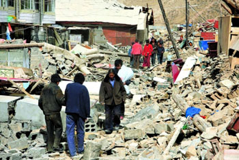 青海玉樹地震災(zāi)區(qū)受災(zāi)嚴(yán)重,結(jié)古鎮(zhèn)土木結(jié)構(gòu)的房屋幾乎全部倒塌。新華社記者 任曉剛/攝