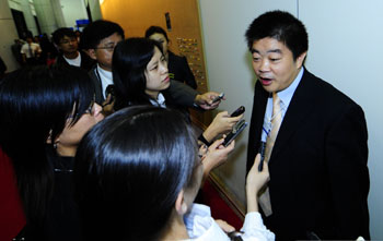華旗(愛國者)總裁馮軍在2009夏季達沃斯年會會場接受記者采訪時說,中國知識產權領域將會成為中國經濟的新的龍頭,要轉變知識產權保護的被動狀態(tài),在全球知識產權領域發(fā)揮重要作用。新華社記者 任勇/攝 |