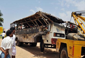 印度公共汽車起火爆炸造成30人死亡