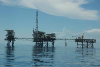 4月19日上午8時(shí),巡航執(zhí)法編隊(duì)抵達(dá)彈丸礁。該礁于1979年被馬來西亞占領(lǐng)。1994年,馬來西亞宣布在礁上開發(fā)旅游,建設(shè)機(jī)場,每年吸引大量游客。還沒來得及仔細(xì)觀察這一島礁,我就聽到馬來西亞海軍的高頻喊話。我方則明確宣示:“我們是中華人民共和國海監(jiān)執(zhí)法船,正在中華人民共和國管轄海域定期巡航執(zhí)法! 19日下午,馬來西亞出動(dòng)一艘軍艦跟蹤我船約40分鐘并不停喊話,說什么我們已經(jīng)進(jìn)入馬來西亞管轄海域,須立即離開。該軍艦還企圖同我船并駕齊驅(qū),強(qiáng)迫我們離開該區(qū)域。但我們態(tài)度堅(jiān)決,明確告訴對方這是中國管轄海域,加之我海監(jiān)船體形較大,對方不敢貿(mào)然靠近,最后只好放棄跟蹤。 晚10時(shí),我們慢慢駛近馬來西亞在南康暗沙的油氣田。只見10來個(gè)鉆井平臺(tái)呈圓弧形分布,綿延一二十海里,聳立在我南海海域,每座平臺(tái)都燈火輝煌,猶如一座座海上宮殿,十分扎眼。