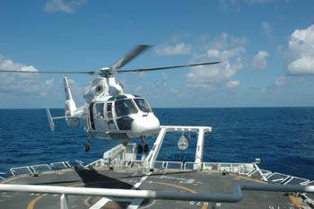 國家海洋局南海分局局長兼此次巡航執(zhí)法編隊(duì)指揮員李立新是這次巡航執(zhí)法隊(duì)伍的總指揮。 他說,近年來,中國面臨的海洋問題日益突出,主要體現(xiàn)在島礁被侵占、海域被分割、資源被掠奪、開發(fā)被阻撓等4個(gè)方面,南海問題如果處理不好,就有可能從和平之海演變?yōu)槲C(jī)之海,變成“麻煩之!、“災(zāi)難之海”。在此情況下,如何發(fā)揮中國海監(jiān)“一盾雙維”的作用,既維權(quán)又維穩(wěn),就顯得尤其重要。 一般人對中國海監(jiān)不太了解,它主要實(shí)行四級管理體制,由中國海監(jiān)總隊(duì)、中國海監(jiān)海區(qū)總隊(duì)、中國海監(jiān)沿海省區(qū)市總隊(duì)、地(市)支隊(duì)和縣級大隊(duì)組成,指揮系統(tǒng)完備,規(guī)章制度完善,擁有一系列先進(jìn)的海上執(zhí)法裝備和較為完善的技術(shù)支撐系統(tǒng),建有專門的常設(shè)指揮體系,能夠?qū)崿F(xiàn)遠(yuǎn)程可視化指揮,具有覆蓋我國全部管轄海域、同時(shí)應(yīng)對多起海上突發(fā)性權(quán)益事件的能力。 為了順利完成此次巡航執(zhí)法任務(wù),我們成立了一個(gè)編隊(duì)——由中國海監(jiān)81船、83船和B-7112直升機(jī)組成!拔覀儗⒃诤I虾叫10天。在遠(yuǎn)離祖國大陸的南海上,希望大家一切行動(dòng)聽指揮,同舟共濟(jì)!闭f完,李立新帶頭唱起了《我愛祖國的藍(lán)天》、《我愛這藍(lán)色的海洋》等熱情洋溢的歌曲。我們被歌聲深深地感染著,心中充滿激情和使命感,我們的心早已隨著歌聲飛向大海,飛向祖國的最南端——曾母暗沙。