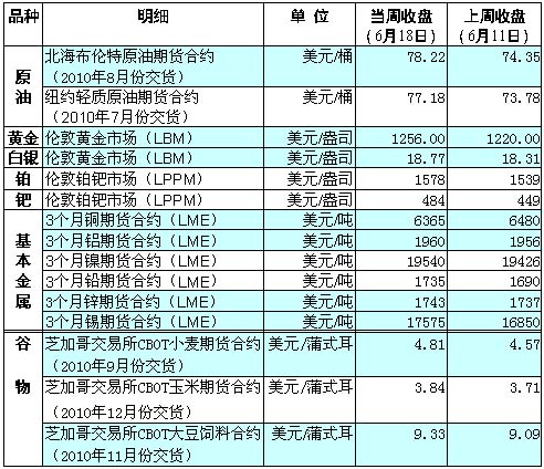 受歐元區(qū)經(jīng)濟(jì)數(shù)據(jù)利好、美元走弱以及原油庫存減少等因素的提振,紐約、倫敦兩地油價(jià)14日雙雙重返每桶75美元上方,16日一度升破每桶78美元,創(chuàng)下6周以來最高收盤價(jià)。 自5月底美國進(jìn)入夏季汽油消費(fèi)季以來,汽油消費(fèi)有所增加。根據(jù)美國能源部16日?qǐng)?bào)告,上周美國汽油消費(fèi)需求呈現(xiàn)上升勢(shì)頭,而過去4周成品油消費(fèi)需求與同期相比增加13.6%。此外,美國煉油廠開工率有所下滑,與前一周相比上周煉油廠開工率下滑了1.2%至87.9%。受此影響,紐約輕質(zhì)原油期貨7月合約在17日小幅下跌之后18日出現(xiàn)小幅回升至每桶77.18美元。 受一系列美國經(jīng)濟(jì)數(shù)據(jù)不及預(yù)期以及美元匯率下跌等因素的綜合影響,紐約商品交易所18日黃金期貨連續(xù)第二個(gè)交易日創(chuàng)下歷史新高,收于每盎司1258.30美元。 美國勞工部17日公布的數(shù)據(jù)顯示,截至6月12日前的一周,美國首次申請(qǐng)失業(yè)救濟(jì)人數(shù)意外上漲1.2萬人至47.2萬人,顯示出美國就業(yè)市場(chǎng)依舊疲軟,加上美國5月份消費(fèi)者價(jià)格指數(shù)連續(xù)第二個(gè)月下跌,令投資者對(duì)美國經(jīng)濟(jì)前景失去信心,也令市場(chǎng)預(yù)測(cè)美國聯(lián)邦儲(chǔ)備委員會(huì)將會(huì)繼續(xù)維持超低利率政策以刺激經(jīng)濟(jì)復(fù)蘇。 此外,西班牙政府17日成功發(fā)行價(jià)值35億歐元的10年期及30年期國債,顯示出市場(chǎng)憂慮情緒已得到逐步緩解,提振歐元對(duì)美元匯率繼續(xù)攀升。有分析稱,美元走弱可以使美國以外的投資者降低購買黃金的成本,刺激黃金需求,這可能將導(dǎo)致黃金期貨價(jià)格在幾周內(nèi)進(jìn)一步升高至每盎司1300美元的水平。 受油價(jià)大幅上漲提振,以及潮濕氣候和需求加大等因素的綜合影響,芝加哥期貨交易所18日小麥、大豆和玉米期貨價(jià)格較前一周均有上漲。近期加拿大西部持續(xù)的降雨以及美國南部大平原部分地區(qū)的潮濕天氣令投資者預(yù)期加拿大小麥減產(chǎn),近期有所回落的美元匯率也可能吸引國際采購商轉(zhuǎn)而購買美國小麥。美國中西部近期出現(xiàn)的過量降雨和洪水也令當(dāng)?shù)卮蠖共シN工作陷入停滯,為大豆期價(jià)提供了利好因素。