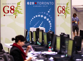在位于加拿大多倫多的G8和G20加拿大峰會新聞中心,先期抵達的記者開始報道準備工作。新華社發(fā)(鄒崢