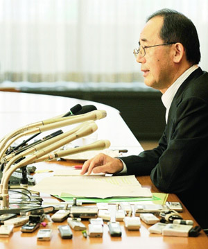 8月10日,日本中央銀行——日本銀行總裁白川方明在東京舉行的新聞發(fā)布會(huì)上講話。 當(dāng)日,日本銀行在結(jié)束為期兩天的金融政策會(huì)議后發(fā)表聲明說,繼續(xù)將銀行間無(wú)擔(dān)保隔夜拆借利率保持在0.1%的水平不變。