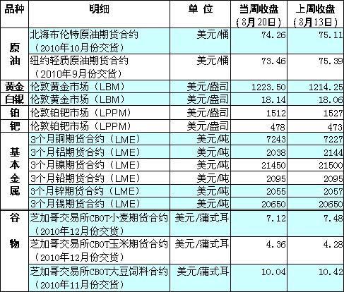 近期以小麥為代表長勢兇猛的谷物期貨價格當(dāng)周小幅回調(diào),國際油價震蕩下行。美國農(nóng)業(yè)部20日宣布向未知目的地售出16.5萬噸硬紅冬小麥,略微提振小麥期價,但高于預(yù)期的加拿大小麥產(chǎn)量以及俄羅斯否認(rèn)糧食進(jìn)口傳言令市場心理承壓,遏制了小麥近期醞釀的新一輪漲勢。 有分析人士指出,小麥期價面臨的賣盤壓力不大,而近期價格連續(xù)回調(diào)引發(fā)空頭回補(bǔ),支撐小麥期價小幅反彈。自今年6月份以來,隨著俄羅斯等全球小麥出口國接連遭遇極端惡劣天氣,市場對全球小麥供應(yīng)量的關(guān)注驟然加劇,加上國際投機(jī)力量大肆炒作,國際大宗商品市場小麥期貨價格7月份創(chuàng)下37年以來最大單月漲幅。 受美國股市下跌和美元走高影響,投資者操作謹(jǐn)慎,市場交易清淡,對大宗商品形成壓力。當(dāng)周國際油價顯現(xiàn)跌勢,周中最后一個交易日紐約商品交易所9月份交貨的輕質(zhì)原油期貨價格盤中最低跌至每桶73.19美元,是6周以來最低交易價格。 受美國失業(yè)數(shù)據(jù)不及預(yù)期等消息影響,當(dāng)周市場對全球經(jīng)濟(jì)復(fù)蘇勢頭趨緩的憂慮加深,令黃金市場上的避險買盤不斷涌現(xiàn),周中金價一度觸及每盎司1239.5美元的7月1日以來主力合約的高點(diǎn)。另外,隨著24日印度兄妹節(jié)的臨近,印度將迎來傳統(tǒng)黃金消費(fèi)旺季,近期珠寶商提前采購黃金補(bǔ)充庫存,支撐黃金期價本周累計(jì)上漲1%,為連續(xù)第三周保持漲勢。