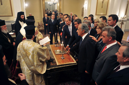 9月7日,在希臘首都雅典,新內(nèi)閣成員宣誓就職。