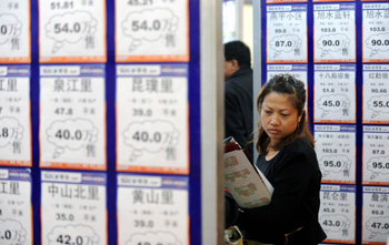 近日,在天津國際展覽中心,一名市民在2010秋季天津房交會上的售樓信息板前駐足。新華社記者 李木子