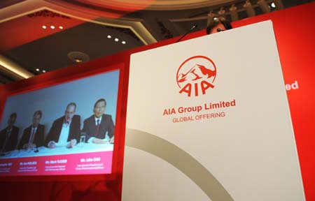 美國國際集團(AIG)旗下的亞洲人壽保險公司友邦保險(AIA)17日在香港宣布啟動首次公開募股。友邦保險計劃發(fā)行58.6億股,有望集資高達1153億港元,成為今年以來香港集資額度最大的首次公開募股之一。友邦保險總裁馬克·塔克(屏幕右二)17日在美國通過實時視頻向媒體表示,未來5年亞太區(qū)保險產(chǎn)品的市場增長潛力無與倫比。