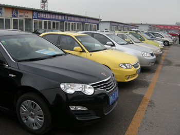 在天津市王蘭莊二手車交易市場,記者看到,占地20萬平方米的露天空地上,滿滿當當停放著上千輛各種品牌和款式的待售車輛。而在停車場的旁邊,則是四五排被設計成列車車廂般形狀的臨時建筑,百余家二手車公司就坐落在這些建筑內。