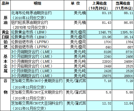 國際大宗商品期貨價格明細表