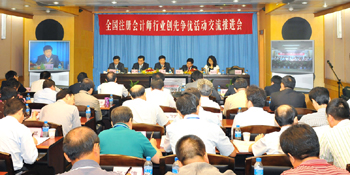 廣泛深入持續(xù)有效開展創(chuàng)先爭優(yōu)活動(dòng),推動(dòng)行業(yè)實(shí)現(xiàn)跨越式發(fā)展。圖為全國注冊會(huì)計(jì)師行業(yè)創(chuàng)先爭優(yōu)活動(dòng)交流推進(jìn)電視電話會(huì)議。 |