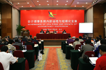 指導(dǎo)事務(wù)所加強(qiáng)內(nèi)部治理機(jī)制建設(shè),夯實(shí)誠信發(fā)展的基礎(chǔ)。圖為中國注冊會(huì)計(jì)師協(xié)會(huì)以“會(huì)計(jì)師事務(wù)所內(nèi)部治理與規(guī);l(fā)展”為主題舉辦第三屆注冊會(huì)計(jì)師論壇。 |