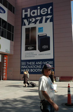 美國拉斯維加斯會展中心的巨幅海爾廣告。新華社發(fā) |