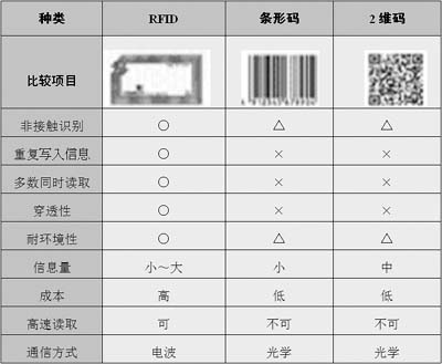 表1RFID和條形碼的比較