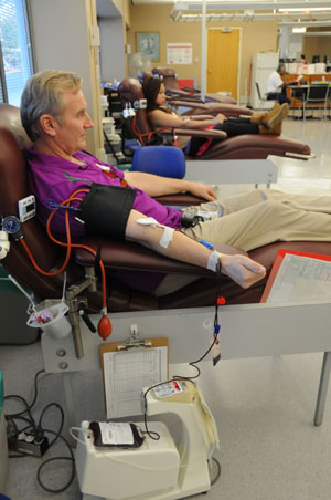 11月1日,在加拿大溫哥華市的一個獻(xiàn)血站,一名男子無償獻(xiàn)血。記者 馬丹/攝 |