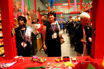 外國(guó)游客參觀慶陽(yáng)香包展廳。 |