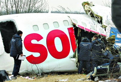 12月5日,工作人員在俄羅斯莫斯科多莫杰多沃機(jī)場的“圖-154”客機(jī)緊急迫降現(xiàn)場展開調(diào)查。 俄羅斯航空署署長涅拉季科4日在多莫杰多沃機(jī)場說,當(dāng)天因機(jī)械故障在該機(jī)場緊急迫降的“圖-154”客機(jī)降落后撞上一座小山丘,斷裂成3截。俄衛(wèi)生和社會(huì)發(fā)展部說,事故共導(dǎo)致2人死亡,80多人受傷,部分人員傷勢嚴(yán)重。