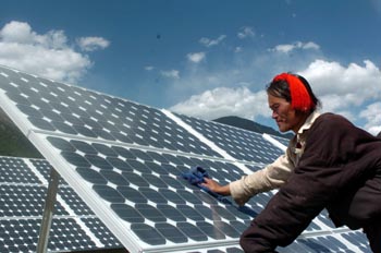 在西藏,太陽能資源已被廣泛用于照明、通訊、廣播電視、燒水做飯、取暖等領(lǐng)域。記者 劉泉龍/攝 |