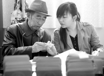 ▲鄂爾多斯市構(gòu)建覆蓋城鄉(xiāng)的居民養(yǎng)老保險體系東勝區(qū)社保局的工作人員在為趙勝元老人(左)辦理領(lǐng)取養(yǎng)老保險金的存折。近年來,鄂爾多斯市政府安排專項(xiàng)資金用于城鄉(xiāng)居民養(yǎng)老保險工作,將全市符合參保條件的80萬農(nóng)牧民和城鎮(zhèn)無業(yè)居民納入養(yǎng)老保險范圍,全面建設(shè)覆蓋城鄉(xiāng)的居民養(yǎng)老保險體系。