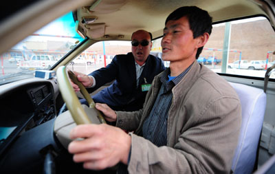 ▲在準(zhǔn)格爾國安駕校,46歲的薛家灣鎮(zhèn)阿岱溝村農(nóng)民李貴云(右)在老師的指導(dǎo)下學(xué)習(xí)駕駛。近年來,鄂爾多斯通過“定向培訓(xùn)、促進(jìn)就業(yè)”和“補(bǔ)貼學(xué)費(fèi)、免費(fèi)培訓(xùn)”等方式,對農(nóng)村剩余勞動力進(jìn)行職業(yè)技能培訓(xùn)。