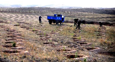 ▲準(zhǔn)格爾旗生態(tài)建設(shè)施工現(xiàn)場。