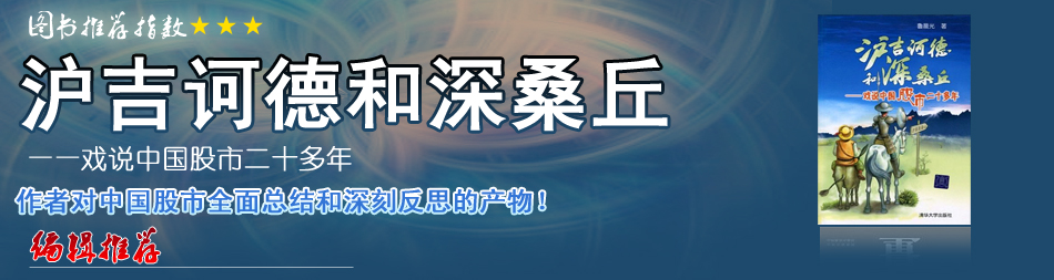 | 魯先生的這本書,用詼諧幽默的筆調(diào),通過描述滬吉訶德與深桑丘主仆在股指山上的經(jīng)歷,還原了中國股市二十多年來的歷史。對老股民來說,是重溫歷史,總結(jié)經(jīng)驗教訓(xùn);對新股民來說,則是一本通俗易懂的教材。 |