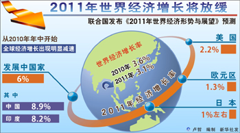 聯(lián)合國經(jīng)濟與社會事務(wù)部在其《2011年世界經(jīng)濟形勢與展望》報告也說,從2010年年中開始,全球經(jīng)濟增長出現(xiàn)明顯減速,2011年的增長很可能將更加緩慢。