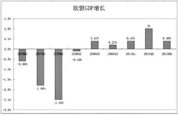 .4%、0.1%、0.2%,而且物價指數(shù)一直落在歐洲央行的2%界限以下,最近三個月的數(shù)據(jù)是1.5%、1.6%、1.4%。由于經(jīng)濟傾向于下行,加上財政緊縮等政策,歐洲經(jīng)濟可能在2011年后進入通貨緊縮。