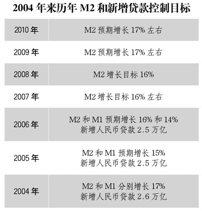 亦有媒體稱,2011年廣義貨幣供應(yīng)量M2增速目標(biāo)將在16%左右;金融機(jī)構(gòu)新增貸款目標(biāo)規(guī)?赡転7.5萬億左右,但這一目標(biāo)規(guī)模目前尚未最終確定。