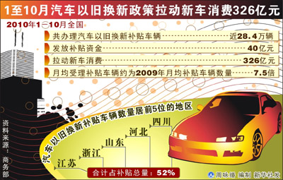 經國務院批準,自2010年6月1日起,結合各地區(qū)舊家電拆解處理能力等條件,家電以舊換新政策擴大到河北、山西、遼寧、大連、吉林、黑龍江、安徽、福建、廈門、江西、河南、湖北、湖南、重慶、四川、貴州、陜西、甘肅、青海等并逐步推廣到全國范圍內實施,截止時間暫定為2011年12月31日。汽車以舊換新政策的實施期限也由2010年5月31日延長至2010年12月31日。