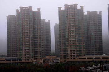 迷霧中的臺(tái)州某樓盤。新華社記者 王俊祿/攝 |