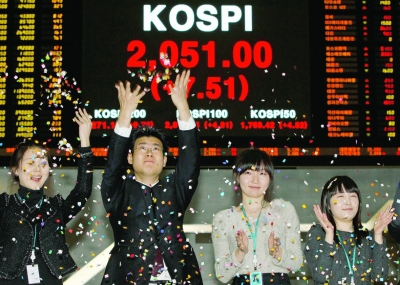 韓國綜合股指突破2050點(diǎn)大關(guān)再創(chuàng)今年新高