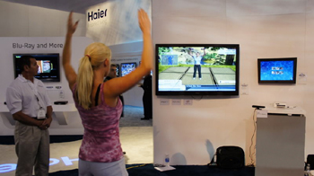 據(jù)介紹,該產(chǎn)品采用業(yè)內(nèi)領(lǐng)先的表面光波技術(shù),并結(jié)合海爾獨有的技術(shù),同時,海爾智能電視還搭載了全球最領(lǐng)先的手勢控制系統(tǒng),只需連接一個攝像頭,用戶就可以通過手勢實現(xiàn)電視圖片、視頻、音頻、游戲等功能的切換。更為神奇的是,該電視還內(nèi)置了多款應(yīng)用游戲,用戶可通過手勢及身體姿勢操控體感游戲,真正實現(xiàn)了用戶與電視的實時互動。