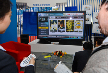 2010年11月19日第五屆文博會上,一位參觀的觀眾向展臺工作人員詢問高清機(jī)頂盒的點(diǎn)播功能。借助三網(wǎng)融合、IPTV等技術(shù),電視觀眾將改變以往被動接受的收視習(xí)慣,進(jìn)入到想看什么點(diǎn)什么的互動點(diǎn)播時代。記者