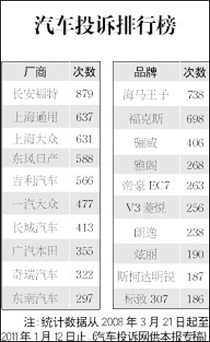 · 汽車投訴排行榜[2011-01-06] 2011-01-06
