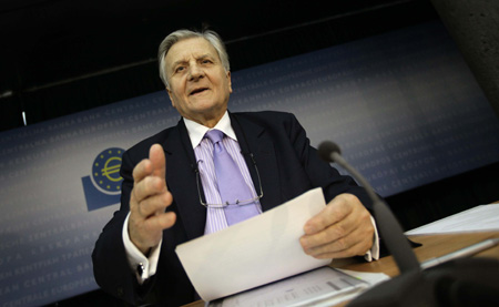 歐洲央行行長特里謝13日在德國法蘭克福的總部表示,維持1%的利率水平不變。他還指出,最新的數(shù)據(jù)表明,歐元區(qū)的復蘇勢頭已經(jīng)形成,歐元區(qū)經(jīng)濟面臨著短期的通脹壓力,而長期通脹仍需要密切監(jiān)測。當天,英國央行也宣布維持利率在0.5%不變。