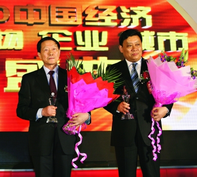 1月15日下午,由《經(jīng)濟(jì)參考報》等八家新華社媒體聯(lián)合主辦的“轉(zhuǎn)型·2010中國經(jīng)濟(jì)十大領(lǐng)軍人物、企業(yè)、城市頒獎典禮”在新華社大禮堂舉行,前國資委主任李榮融、江蘇省昆山市獲得中國經(jīng)濟(jì)轉(zhuǎn)型特別貢獻(xiàn)獎。 圖為李榮融(左)與昆山市市長管愛國(右)合影。