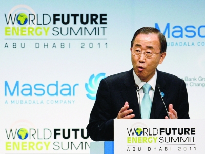 1月17日,聯(lián)合國秘書長潘基文在阿布扎比舉行的世界未來能源峰會上發(fā)表演講。 當(dāng)天,世界未來能源峰會第四屆年會在阿聯(lián)酋首都阿布扎比國家展覽中心開幕。世界未來能源峰會被認(rèn)為是全球再生能源國際合作重要平臺之一,目的是在再生能源領(lǐng)域?qū)で笙嚓P(guān)政策、鼓勵發(fā)明創(chuàng)新、加大投資力度。
