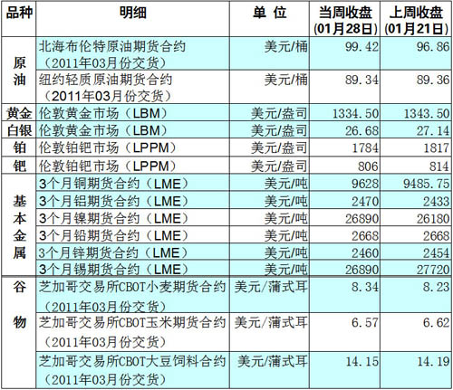 · 國際大宗商品期貨價(jià)格明細(xì)表 2011-01-17