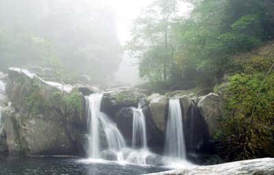 第四絕是明目泉旁地下涌出的一池溫泉,水溫50℃。據(jù)說用此水泡腳,能治腳氣、腳臭等癥。來此的游客大都要在這池浴腳。哪怕在大雪漫山的秋季,都能泡出一身熱汗,好不愜意。