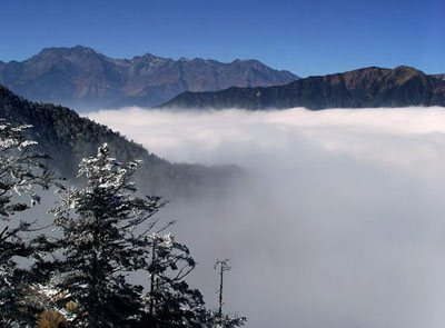 “只要你涉足這一片土地,那些融入天地間的山水樹木、風(fēng)物奇觀就會帶給你無限遐思。屹立在天邊的四姑娘山宛如一位初出閨閣,半含嬌羞的少女,鶴立于群山之巔,它冰清玉潔,滋潤萬物;它風(fēng)寒陡峭,厚德載物。置身于景區(qū),一日可見四季景觀。藍天白云下,雪峰峭拔,古樹蒼翠,飛瀑狂瀉,流泉清冽。草甸芳菲上,千年沙棘迎客,飛禽走獸徜徉……”這樣的一幅幅撼人心魄的立體畫卷便是薈萃了世界上最豐富旅游資源、最令人震撼自然景觀,最原始自然風(fēng)光,最神秘民俗文化的四姑娘山風(fēng)景名勝區(qū)。 四姑娘山位于中國四川西北部的小金縣境內(nèi),距四川省會成都200余公里.景區(qū)面積450平方公里,由四姑娘山、雙橋溝、長坪溝、海子溝四部分組成,四姑娘山主峰海拔6250米,是四川第二高峰,有“蜀山皇后”之美譽。四姑娘山于1994年被評為國家重點風(fēng)景名勝區(qū),1996年被評為國家級自然保護區(qū),2001年被評為國家“AAAA”級旅游區(qū),2005年被評為國家地質(zhì)公園,2006年7月12日,