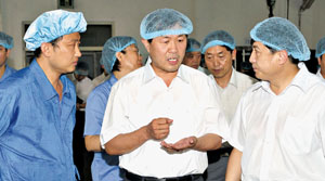 世事有冷暖,人心一桿秤。2010年大年初一,王社平帶領(lǐng)著華藥領(lǐng)導(dǎo)班子成員到生產(chǎn)一線看望堅守崗位的職工,并與職工們一起吃餃子,一位華藥老職工把放了10來年的一瓶家鄉(xiāng)酒,含著淚讓王社平喝!帮溩泳途疲胶仍接。感謝企業(yè)給我們幸福生活。一年到頭,您不停地為企業(yè)操勞,過年了,請喝下這杯感謝酒,您是我們心中的英雄”。此時此景,王社平淚花閃爍……凝聚就是力量,心齊必創(chuàng)輝煌。