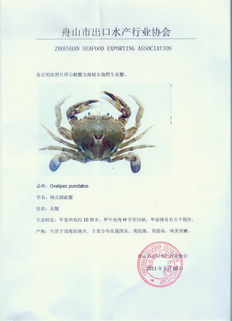 舟山市出口水產(chǎn)行業(yè)協(xié)會(huì)出具的證明