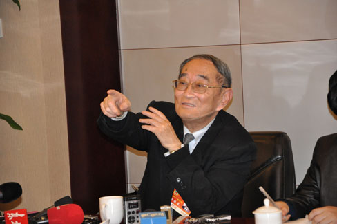 | 厲以寧11日在鐵道大廈記者會上表示,工資成本上升是合理的,中國(最低)工資標(biāo)準(zhǔn)太低了。王濤/攝