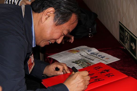 “寫得太好了!”周圍的記者都不禁贊嘆。于是,記者此前在兩會上從來沒有見到的一幕發(fā)生了,他們紛紛上前請求萬季飛為自己的報刊題詞。在萬季飛的身后,排起了一條捧著紙筆等待他題詞的記者組成的長隊。